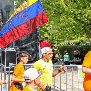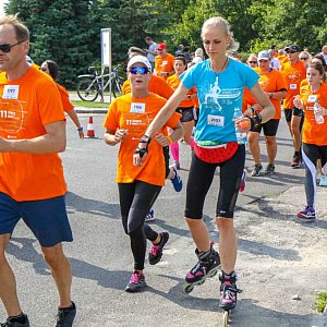 Tradycyjnie rozgrzewkę przed startem prowadzą na Onkobiegu znani sportowcy - w tym roku byli to Andrzej Supron, były zapaśnik i Jakub Witkowski, wicemistrz Europy w brazylijskim Jiu Jitsu. Po 13:30 tłum pomarańczowych postaci ruszył na trasę. Okrążenie wokół Centrum Onkologii i Instytutu Hematologii i Transfuzjologii liczyło ok. 1,5 km. Przebiegnięcie, przejście lub przejechanie na hulajnodze jednego sprawiało, że na koncie stowarzyszenia Sarcoma lądowały złotówki od sponsorów. Większość uczestników pokonywała 1, 2, lub trzy pętle, ale byli też tacy, którzy pokonali ich dużo więcej - najczęściej biegacze, dla których bieganie w upale to pestka.