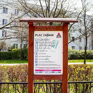 - W pierwszej kolejności sprawdzamy, czy jest tablica informacyjna. Jeśli tak, to musimy sprawdzić, czy jest czytelna i czy widnieją na niej numery telefonów do zarządcy. Następnie zwracamy uwagę na ogrodzenie. Trzeba sprawdzić czy jest kompletne. Następnie sprawdzamy wszystkie zabawki i ich stan techniczny. Zwracamy uwagę na infrastrukturę. Tu wyraźnie widać, że poliuretanowa pianka służąca za podłoże jest wypaczona. Ponadto nie podobają mi się betonowe krawężniki, które okalają plac zabaw. Stwarzają zagrożenie dla dzieci i powinny być czymś osłonięte – mówi strażniczka Anna Kulisz.