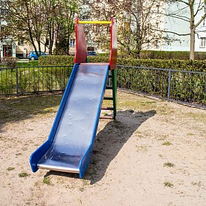 Przy Kazury 2b znaleźliśmy wystający spod ziemi korzeń oraz pety w piaskownicy. Natomiast na placu zabaw przy Kazury 26 należy naprawić zamek, zlikwidować zdezelowaną huśtawkę i usunąć wystające śruby.