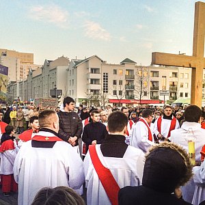 Parę minut po 19:00 przed kościołem Wniebowstąpienia Pańskiego uformowała się procesja. Pierwsza z czternastu stacji umiejscowiona była tuż przy dzwonnicy kościoła przy al. KEN.