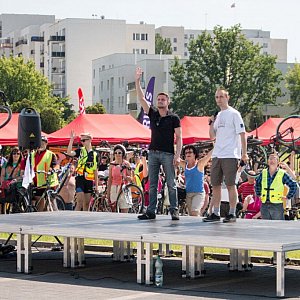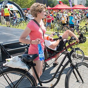 Mimo upału, na mecie zjawiło się kilkuset miłośników dwóch kółek. Przywitał ich burmistrz Piotr Guział. - Nasza dzielnica słynie z dużej liczby rowerzystów i biegaczy. Staramy się robić wszystko, by ułatwiać im życie - mówił włodarz dzielnicy.