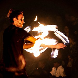 Zachwytom i oklaskom nie było końca. Popisowym numerem było manipulowanie ogniem z zasłoniętymi oczami oraz "Ognisty oddech". Młodzi ludzie pokazali talent i pasję. Już dawno w naszej dzielnicy nie było tak widowiskowego show i to pomimo pewnych braków organizacyjnych - słabego nagłośnienia czy braku wydzielenia terenu. Ale pamiętajmy, była to inicjatywa spontaniczna, oddolna, w całości przygotowana przez młodych pasjonatów.