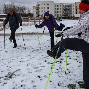 Zajęcia trwają półtorej godziny. Zaczynają się od rozgrzewki. Uczestnicy rozgrzewają mięśnie i ćwiczą także z kijkami.
