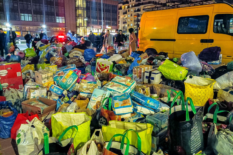 Już 25 lutego ruszyła pierwsza oddolna zbiórka darów. Odzew był ogromny - rzeczy nie mieściły się do furgonetek. Kolejne zbiórki spotykały się z podobnym odzewem.