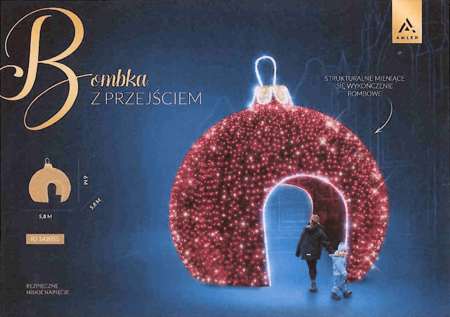 Ale to nie wszystko! Nowością pod ratuszem będzie bombka z przejściem 3D. Będzie to konstrukcja o wysokości 6 metrów i szerokości 5,8 metra, przez którą będzie można przejść. Bombka zostanie wykonana w technologii LED z rombowym wykończeniem, które będzie się mieniło.