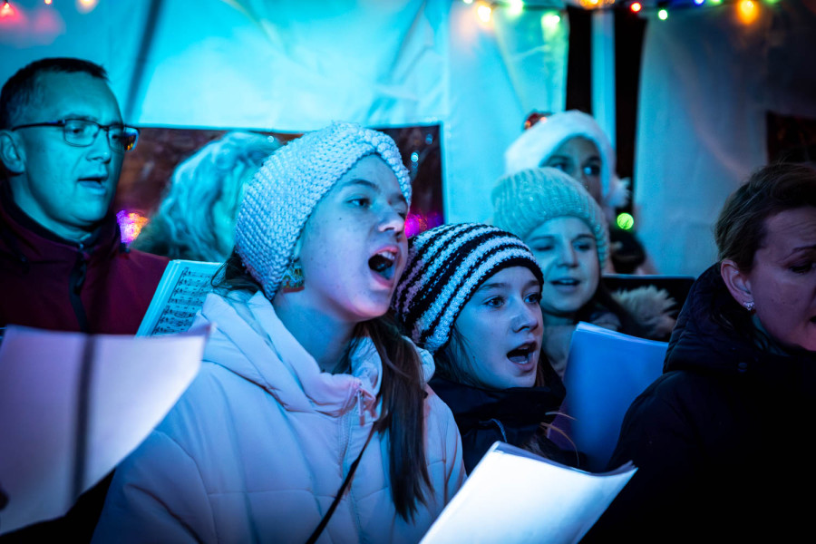 Wyjątkowego, świątecznego klimatu nadawał wydarzeniu trwający w tle koncert kolęd. Chór Candoris śpiewał gościom największe świąteczne szlagiery. Było "Przybieżeli do Betlejem", "Bóg się rodzi" i wiele innych. Poza kolędami były też świąteczne piosenki w aranżacji na saksofon. Mieszkańcy kołysali się w rytm muzyki, jednak niewielu zdecydowało się na dołączenie do śpiewu.