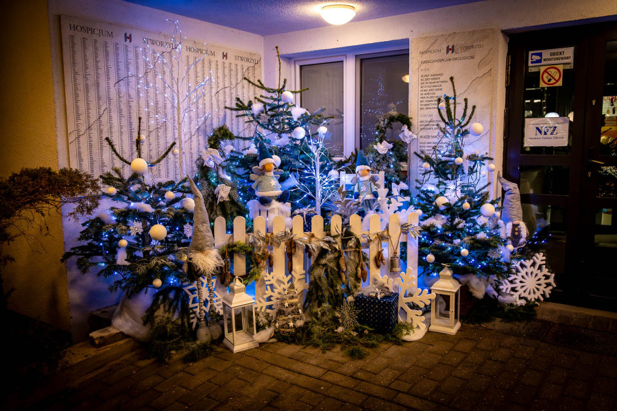 Świąteczną magię dało się tu poczuć jeszcze przed wejściem na teren hospicjum. Całe niemałe przecież ogrodzenie zostało obwieszone kolorowymi lampkami. Podobnie przyozdobiono drzewa i klomby wzdłuż alejki prowadzącej do ogrodu. Efekt? Spektakularny! Potwierdzają to też mieszkańcy, którzy chętnie fotografowali się przy świątecznych dekoracjach.