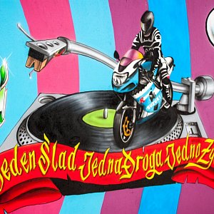 W lewym górnym rogu muralu widnieją ksywki osób, które zrzuciły się na grafikę. Nie zapomniano też o podziękowaniach dla osiedla Pachnąca oraz dla burmistrza.