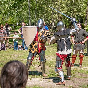 Piękna majowa pogoda zachęca do wyjścia z domu na świeże powietrze. Mnóstwo ursynowian odwiedziło piknik rycerski w Parku Przy Bażantarni. Atrakcji było co niemiara! Walki toczyli średniowieczni rycerze polscy, żmudzcy, litewscy, krzyżaccy. Były pokazy tańca z epoki, strzelanie z łuku, pokazy dawnego rzemiosła. Oblegane - jak zawsze - były stoiska handlowe z zabawkami rycerskimi, podpłomykami wypiekanymi na miejscu w piecu, lodami i watą cukrową.