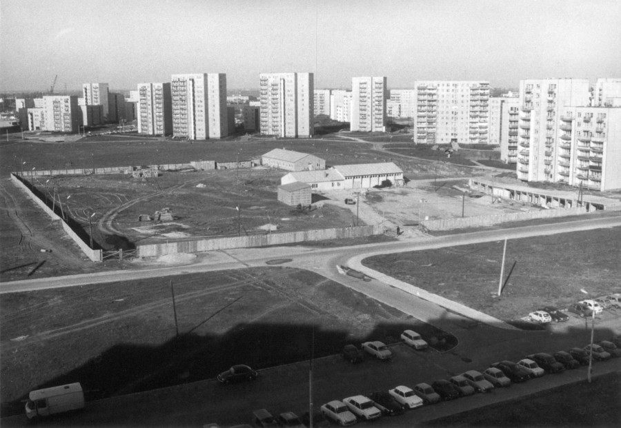 Ten czas wspominam jako coś przerażającego. Jedzie jakiś smok, coś buduje i choć szanowano nasz projekt, nie mam na to wszystko żadnego wpływu! Domy powstawały z prefabrykatów, wymagających ogromnych dźwigów, ciężkiego transportu. Wielkie naczepy samochodowe ciągnięte przez traktory jeździły nad budowaną podziemną infrastrukturą. Pamiętam, jak zdenerwowany dyrektor budowy nakazał zasypać wykop, a były tam już ułożone gołe rury ciepłownicze, żeby mógł przejechać transport prefabrykatów. Absolutny absurd! Inna historia... Siedzimy w baraku, są dziennikarze i jeden z obecnych dygnitarzy partyjnych melduje, że budynek numer taki a taki stoi, choć jeszcze nawet wykopów pod niego nie było!
