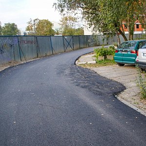 Dzielnica zdążyła w ostatniej chwili przed pogorszeniem pogody. Kilka dni temu na odcinku kilkudziesięciu metrów wylano nową nawierzchnię asfaltową. W planach jest jeszcze budowa chodnika za parkingiem spółdzielczym, przy szeregowcu na Dunikowskiego 34.