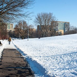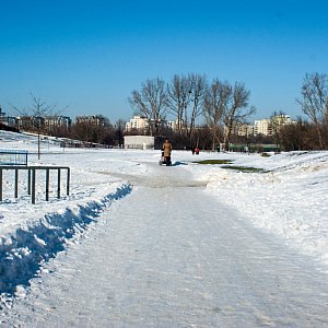 Dzisiejsze słońce i dodatnia temperatura powietrza zachęciły mieszkańców Ursynowa do dłuższych spacerów. Dzieciaki korzystają z ostatków śniegu na górce, a starsi wzięli się za ćwiczenia na świeżym powietrzu.