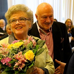 W sali im. Juliana Ursyna Niemcewicza pojawiło się dziś 37 par z najdłuższym stażem małżeńskim. Wraz z 40-leciem Ursynowa świętowali swoje rocznice. Każda para otrzymała gratulacje od burmistrza Roberta Kempy i wiceburmistrza Łukasza Ciołko. W prezencie dzielnica ufundowała stylowe filiżanki z logo dzielnicy oraz książkę o historii Ursynowa. Były też kwiaty, łzy wzruszenia oraz... prośby o poradę.
