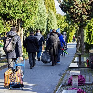 Już dzisiaj w Pyrach był spory ruch. Wiele osób korzystając z pogody przyszło uprzątnąć groby przed świętem, albo starało się uniknąć tłumów, które pojawią się w środę.