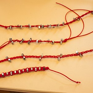 Dziś dzieci wykonywały biżuterię z nietypowych materiałów: - Robimy ozdoby z drewnianych korali. Wykorzystujemy rożne rzeczy, które na co dzień nie są wykorzystywane do wykonywania biżuterii, czyli nakrętki kupione w sklepach metalowych – dodaje Irena Karpowicz – To abstrakcyjna biżuteria, której w sklepach dostać nie można.