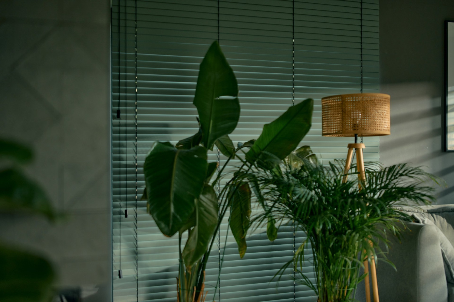Wieczorem światło zmienia swoją rolę: ma już nie tyle oświetlać, co budować nastrój. Rozproszone lampki, świece, LED-y… i tło, które również tworzy osłona w oknie. Poziome linie lamel budują ciepłą i kameralną przestrzeń. Tam, gdzie pojawiają się duże przeszklenia – okna tarasowe, panoramiczne wyjścia na ogród – znakomicie sprawdzają się szerokie lamele - 50 mm lub 70 mm. Tworzą mocny, graficzny efekt: wieczorem wystarczy ustawić je w pozycji zamkniętej, aby zasłonić wnętrze oraz stworzyć elegancki „hotelowy” charakter. Wyceń żaluzje do swoich okien w kalkulatorze online.