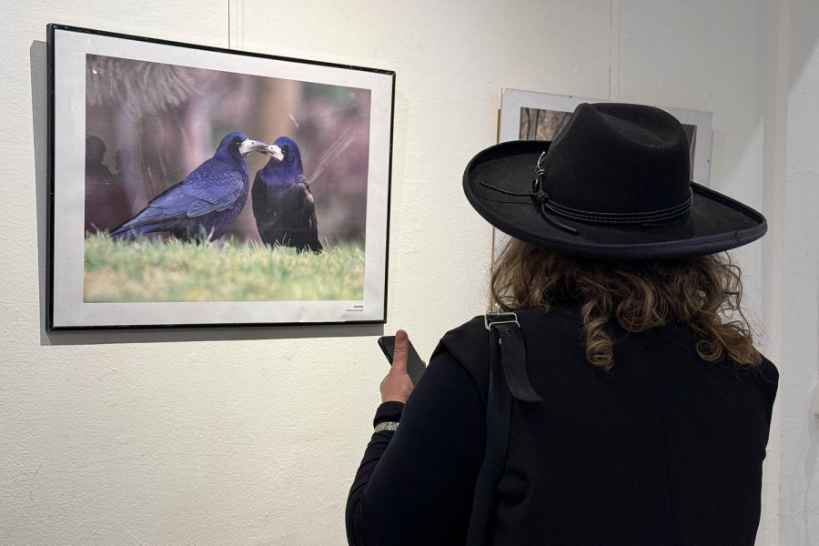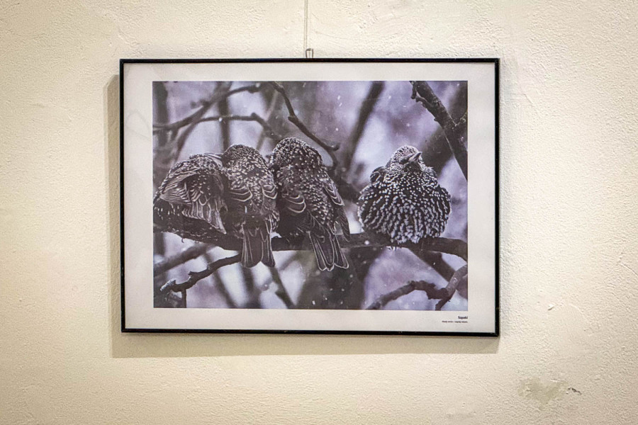 Na ścianach Galerii "U" można np. podziwiać zdjęcie szpaków tulących się w śnieżycy.