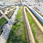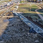 Nasz dron sfotografował nie tylko świeżo otwarty fragment przy Nowoursynowskiej (więcej o tym odcinku piszemy tutaj), ale też zajrzał na budowę sąsiedniego odcinka między Lanciego a Rosoła. Tam wciąż trwają prace – widać świeżo posadzoną zieleń, wykończane alejki i kształtującą się przestrzeń, która już wiosną będzie pełna życia.