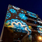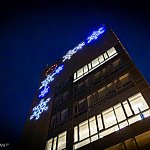 Na budynku ratusza pojawiły się świetlne gwiazdki, a na ścianę od strony Gandhi projektor rzuca świąteczne motywy.