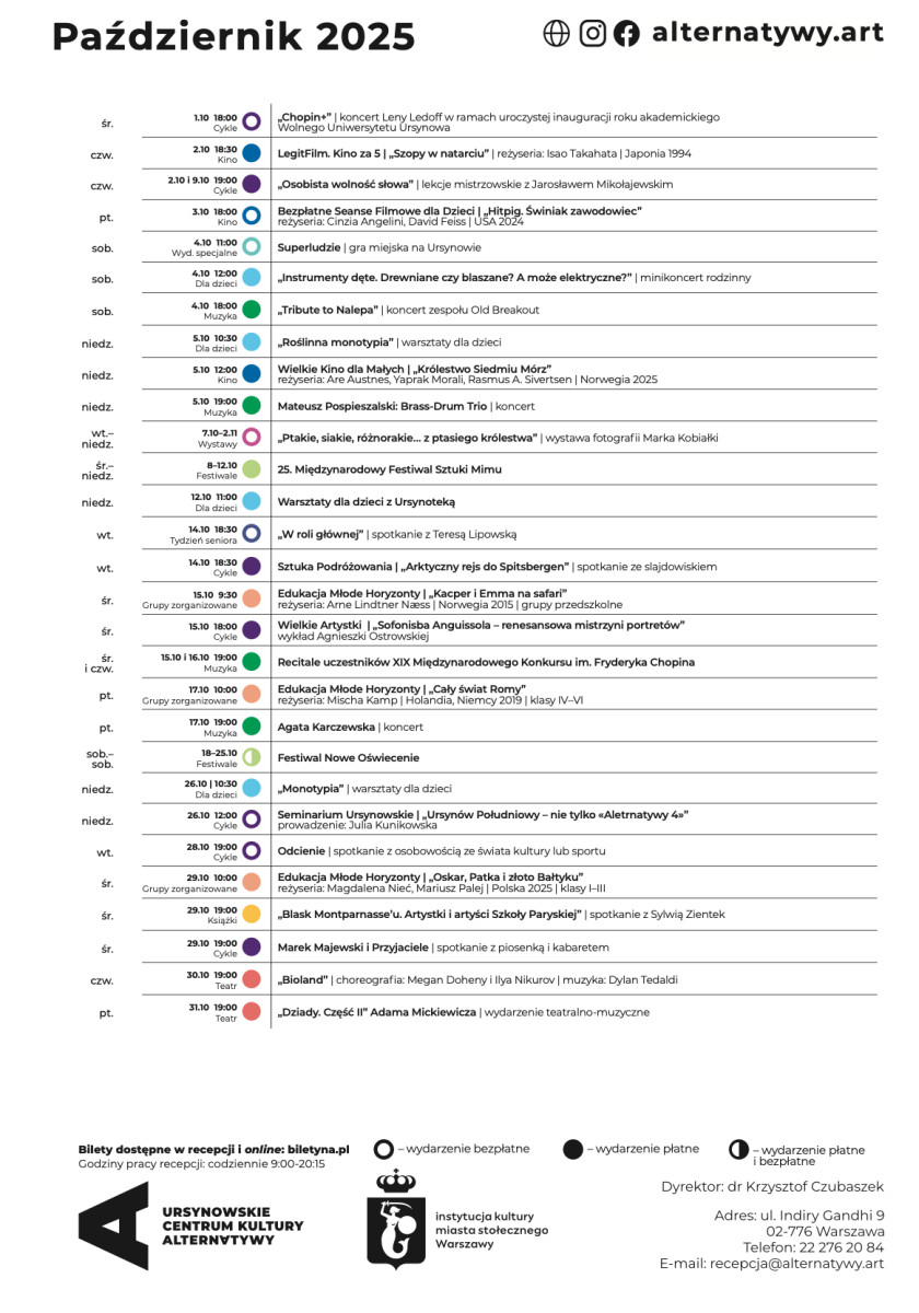 Repertuar UCK Alternatywy na październik 2025 w wersji online pobrać można TUTAJ