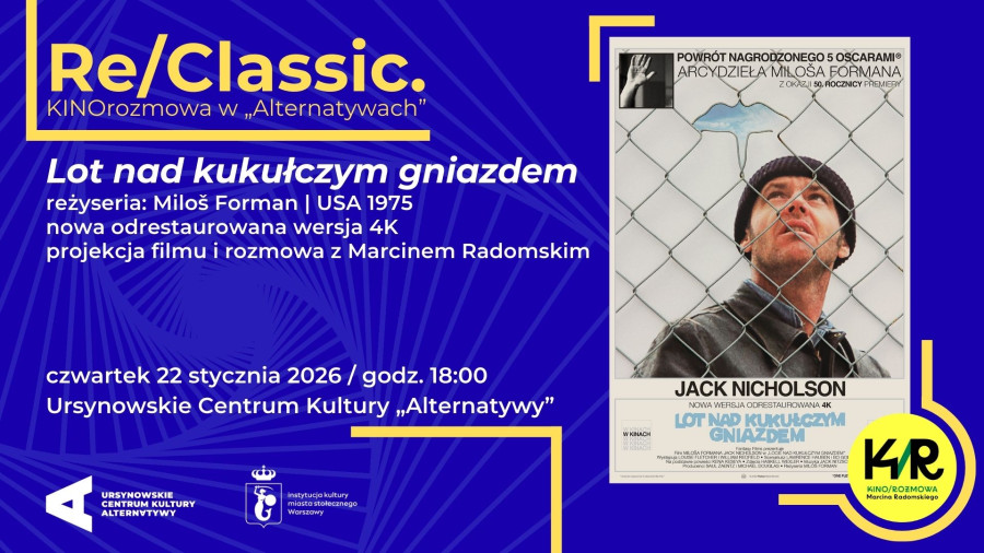 Re/Classic. KINOrozmowa w „Alternatywach”: „Lot nad kukułczym gniazdem”, reżyseria: Miloš Forman | USA 1975, nowa odrestaurowana wersja 4K, projekcja filmu i prelekcja Marcina Radomskiego, od 15 lat, 133 min.