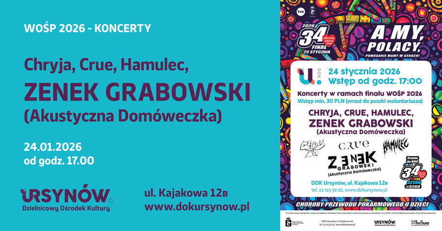Zapraszamy na koncerty w DOK Ursynów w ramach WOŚP.