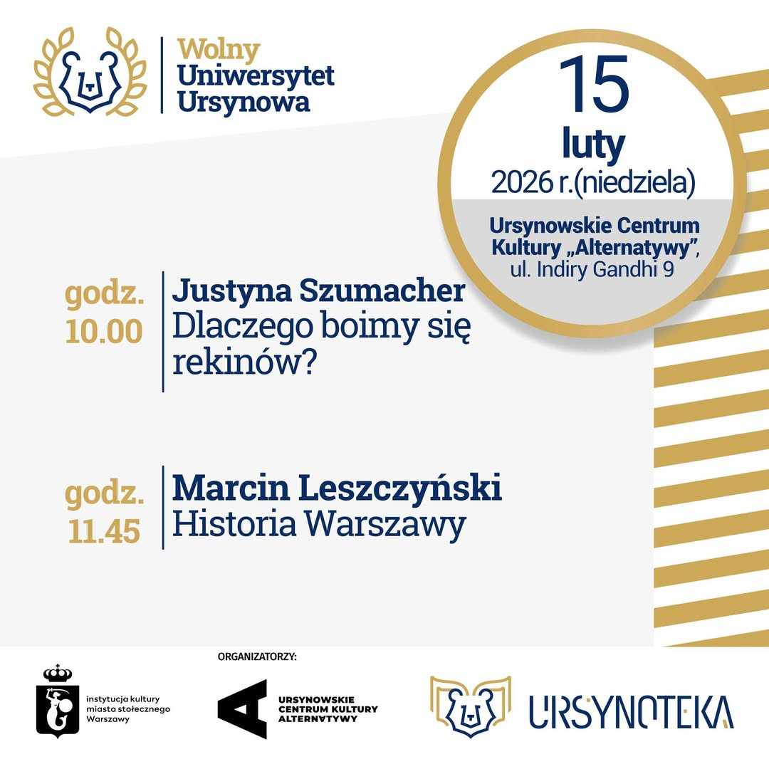 Zapraszamy na spotkanie i wykład w ramach Wolnego Uniwersytetu Ursynowa. Uwaga: wejście za okazaniem indeksu WUU.