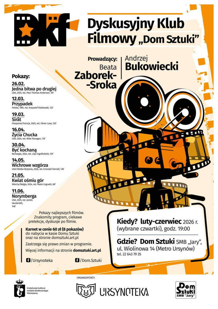 W ramach nowego sezonu Dyskusyjnego Klubu Filmowego "Dom Sztuki" zapraszamy na kolejne seanse filmowe. Wspólnie z Ursynoteką przygotowano seanse, które zostaną w pamięci na długo.