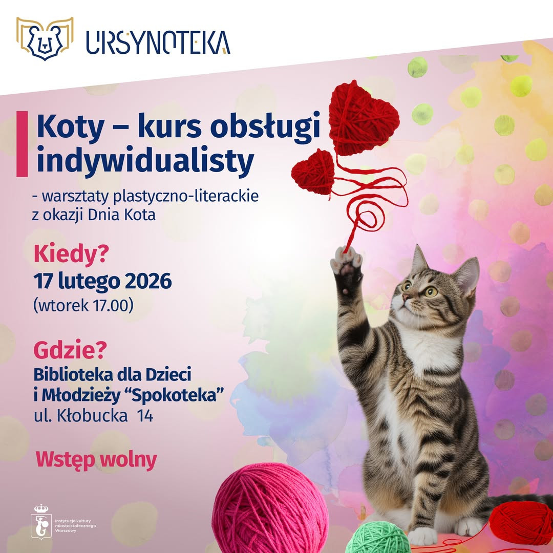 Spotkanie literacko-plastyczne pełne mruczenia i kolorów z okazji Dnia Kota. Zapraszamy wszystkich młodych odkrywców kocich tajemnic. Do zobaczenia na miejscu!