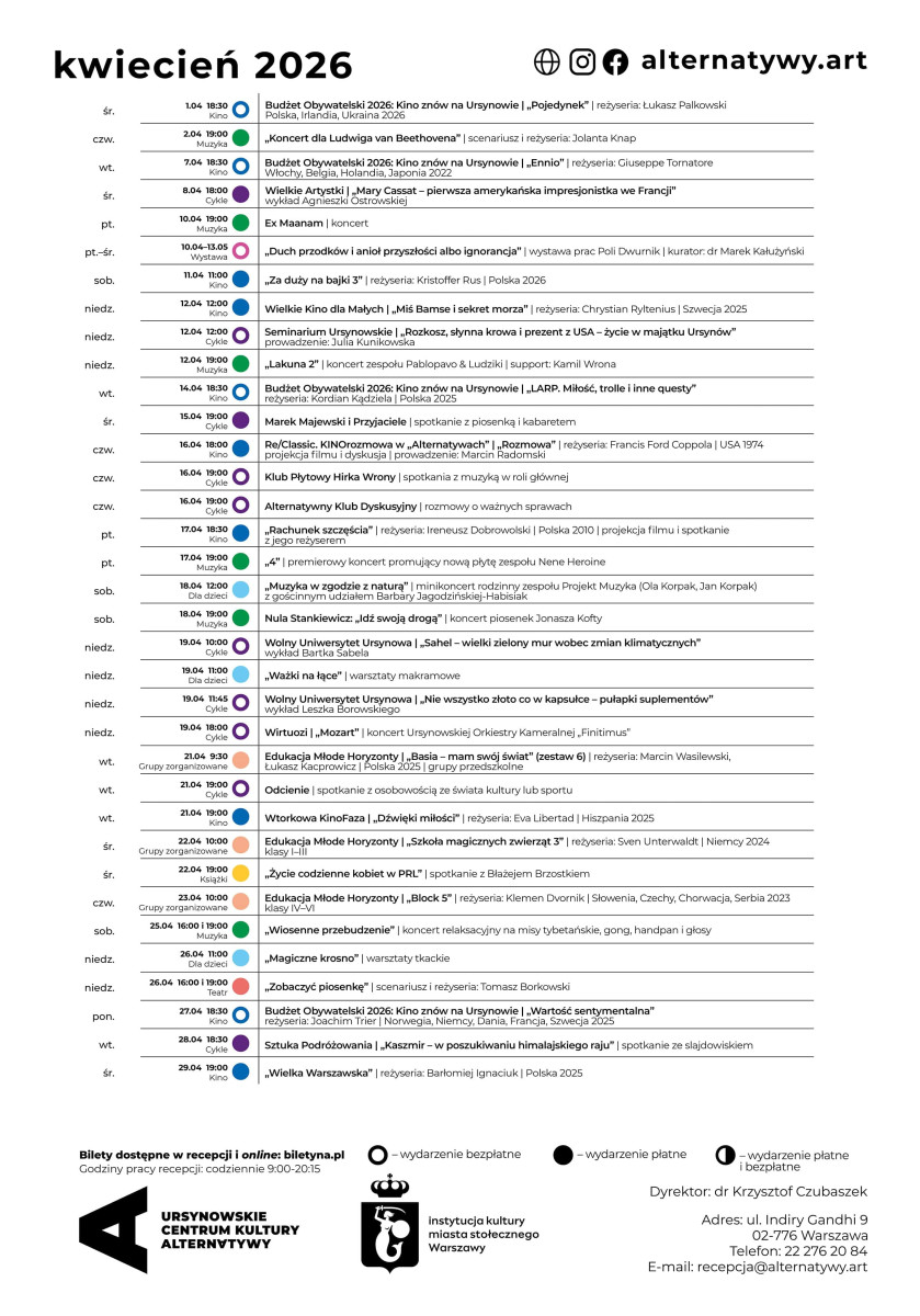 Repertuar UCK Alternatywy na kwiecień 2026 w wersji online pobrać można TUTAJ
