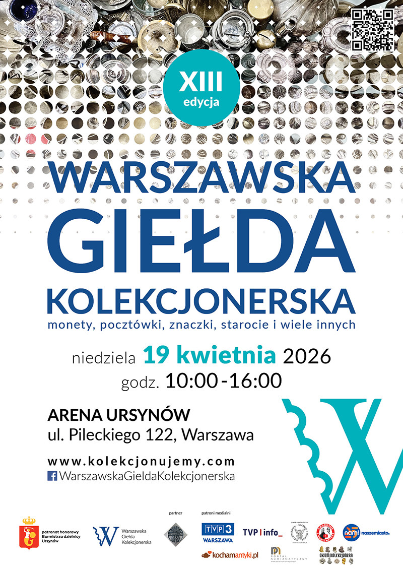 Zapraszamy na XIII edycję Warszawskiej Giełdy Kolekcjonerskiej, która odbędzie się w niedzielę 19 kwietnia 2026 r. w Arenie Ursynów (ul. Pileckiego 122).