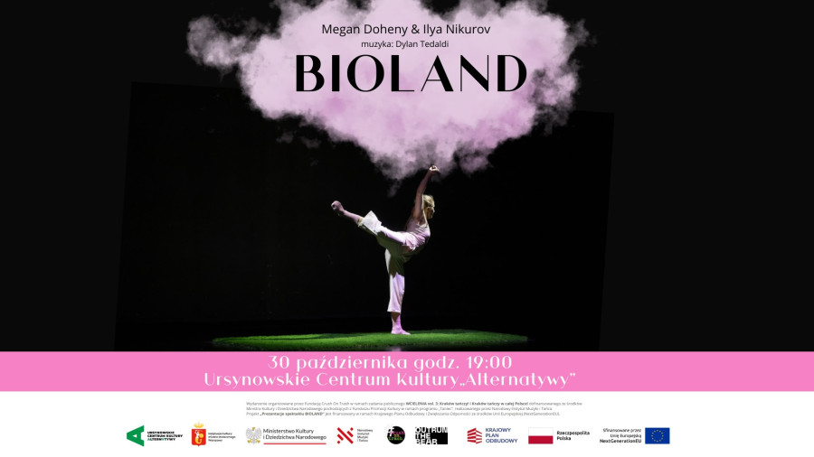 „Bioland” - spektakl Teatru Łaźnia Nowa, choreografia: Megan Doheny i Ilya Nikurov, muzyka: Dylan Tedaldi, 60 min, od 12 lat.