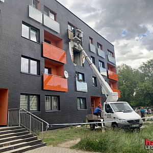 Wybuch nastąpił na drugim piętrze. Był dość silny. Wyłamał z framug okna po obu stronach mieszkania, uszkodził barierkę balkonu oraz elewację. Kobieta z dwójką dzieci zdołała sama wyjść z mieszkania. Ratownicy z pogotowia nie stwierdzili u nich poważnych obrażeń, ale zabrano ich do szpitala. W mieszkaniu były też zwierzęta domowe: pies i kot.