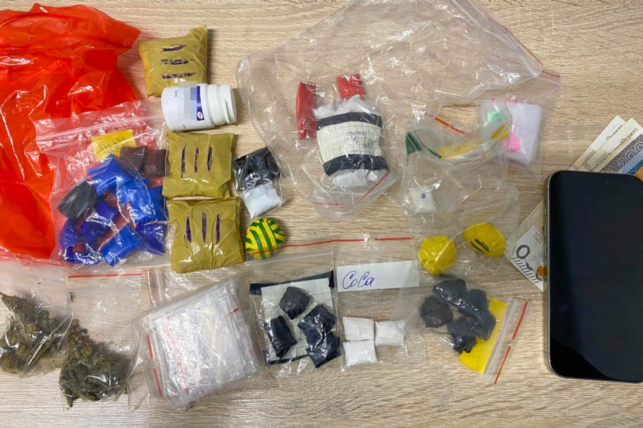 Łącznie zabezpieczono blisko 66 gramów narkotyków w tym: żywicę i ziele konopi, kokainę, grzyby z psylocyną, amfetaminę, tabletki MDMA i Xanax