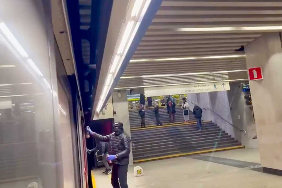 W tle słychać było komunikat nadawany przez maszynistę lub system automatyczny: "Pociąg zakończył bieg. Prosimy o opuszczenie pociągu". Wandale po wykonaniu "dzieła" błyskawicznie uciekli ze stacji.