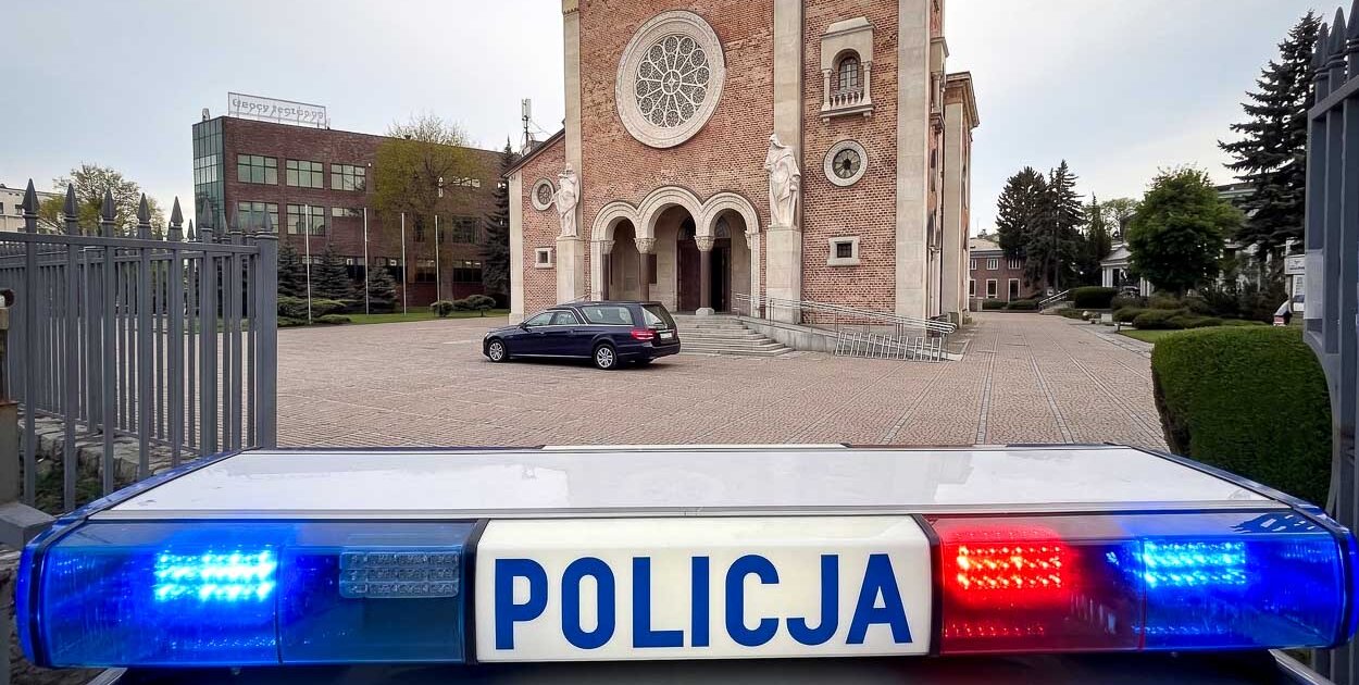 Przed kościołem pyrskiej parafii przy ul. Puławskiej pojawiły się radiowozy, a obok nich funkcjonariusze w pełnym rynsztunku bojowym. W świątyni w tym czasie odbywała się uroczystość pogrzebowa.