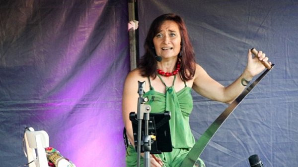 2020-07-19 10:15:00Sąsiedzkie koncerty na Kajakowej. Na pierwszym zabrzmiała piła do drewna. Zagrała na niej Jola Kula