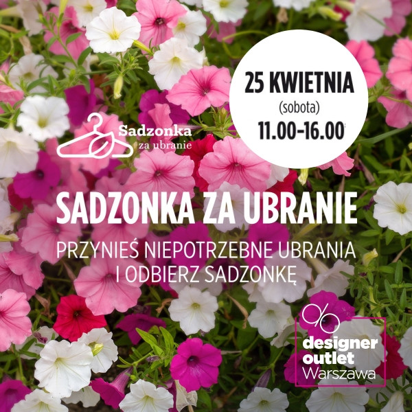 Co należy zrobić? To bardzo proste! Zaplanujcie zakupy w Designer Outlet Warszawa w ostatnią sobotę kwietnia. Koniecznie zabierzcie z sobą wszystkie niepotrzebne tekstylia, które zamierzaliście wyrzucić po wiosennych porządkach w waszych szafach i oddajcie je na specjalnym stoisku, a w zamian wybierzcie wiosenną roślinę na balkon czy parapet. Wystarczy przynieść tylko 2 kilogramy ubrań (oprócz butów, kożuchów i futer), by do domu wrócić z piękną, kwitnącą sadzonką lub doniczką z ziołami.