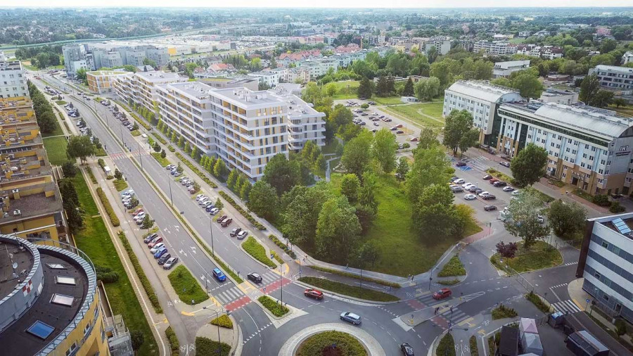 Koncepcja architektoniczna zakłada postawienie czterech budynków na obszernej działce. Po jej jednej stronie są wysokie bloki i szpitale, z drugiej niska zabudowa jednorodzinna przy ul. Rolnej.