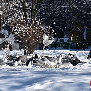 W najtrudniejszych warunkach dla swoich skrzydlatych przyjaciół pani Hanna dokarmia nawet 60 mew jednocześnie. Zlatują się wtedy także gawrony, wrony, kawki i cała masa ptasiego towarzystwa. Zdarza się, że wodne ptaki zakładają na dachach niektórych ursynowskich galerii handlowych gniazda, grzebią w naszych śmieciach i wyciągają nasze brudy.