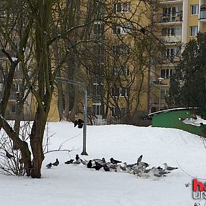 Z Urzędu Ursynowa dostaję za darmo - wcześniej zamówiony - pokarm dla dzikich ptaków (wiele osób odbiera pokarm). Dokarmiam, kiedy jest mróz i gruba warstwa śniegu pokrywa trawniki, skwery, nieużytki. W tym roku zamówiłam 20 kg pszenicy (4x5 kg). Na razie jedna torba 5 kg poszła. Dodatkowo dokupuję specjalną karmę dla dzikich ptaków zimujących, słonecznik łuskany, kule tłuszczowe, słoninę bez soli, płatki owsiane, groch, kaszę pęczak i inne smakołyki (np. jabłka). Podaję pokarm w karmnikach-walcach na balkonie, w karmnikach wiszących na drzewach i w krzewach a także rozsypuję na ubitym śniegu. Korzystają wróble, modraszki, bogatki, dzwońce (czyże, szpaki, dzięcioły jak przylecą), gołębie miejskie, gawrony, wrony, kawki, sroki i ... w pewnym zakresie mewy. Jedzą ziarno, jak są bardzo głodne. Ale wolą mięso, ryby surowe i inne produkty. Hanna Żelichowska