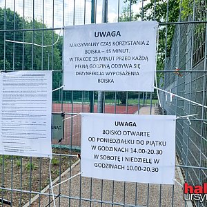 Rzeczywiście, blaszane cudo nie jest ładne, ale ma spełniać użyteczną rolę. W związku z wytycznymi sanitarnymi ursynowski ratusz zatrudnił bowiem specjalną osobę do pilnowania boiska i jego dezynfekowania.
