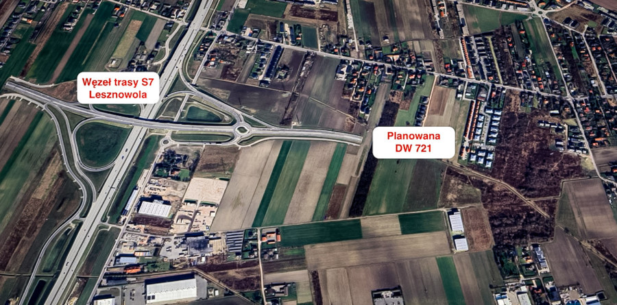 Nowa droga DW 721 o długości około 10 kilometrów będzie miała dwie jezdnie z dodatkowymi pasami serwisowymi. Powstanie siedem skrzyżowań oraz wiadukt nad torami kolejowymi, który rozładuje korki przed przejazdem. Trasa połączy cztery główne szlaki: S7, S8, DW788 i DK79, wyprowadzając ruch tranzytowy z lokalnych ulic. Inwestycja kosztować będzie około 350 milionów złotych.