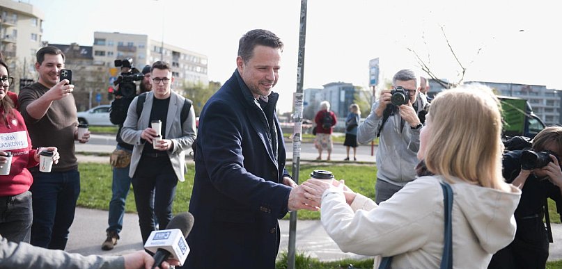 Mieszkańcy Kabat o poranku mogli dostać kawę w podzięce za głosowanie. Rozdawał ją prezydent Rafał Trzaskowski, który wg sondażu IPSOS wygrał w stolicy w pierwszej turze.
