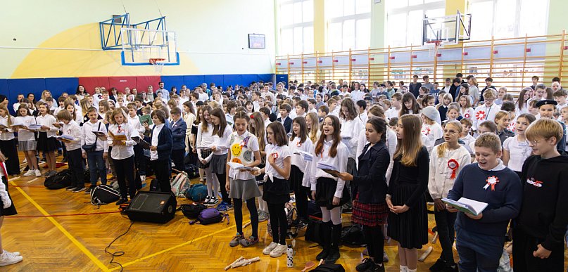 Nietypowy koncert z okazji Święta Niepodległości w Szkole Podstawowej nr 16 im. Tony Halika na Kabatach. Śpiewali wszyscy: uczniowie, nauczyciele i dyrekcja! Poza strunami głosowymi w ruch poszły też flety. Jak się okazuje, gra na tym instrumencie to szkolna tradycja.
