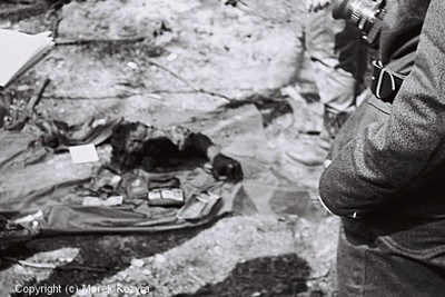 fot. drobiazgi z bagaży… Milicjant dokumentujący miejsce katastrofy. fot. M. Kozyra