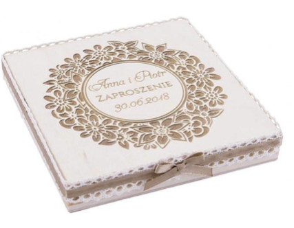 Zaproszenia ślubne dla rodziców w pudełku to wspaniały sposób, aby ich wyróżnić i pokazać, jak bardzo są kochani. Po obu stronach ruchomego wieczka można zamieścić wyjątkową, wzruszającą dedykację. Miejsce wewnątrz wyjątkowych zaproszeń ślubnych dla rodziców zostało przeznaczone na indywidualny tekst, cytat lub wierszyk. Zaproszenia ślubne dla rodziców drewniane, dostępne w sklepie artMA, sprawdzą się także w roli podziękowań dla rodziców i świadków. Wyróżniają się niebanalnym designem i starannym wykonaniem.
