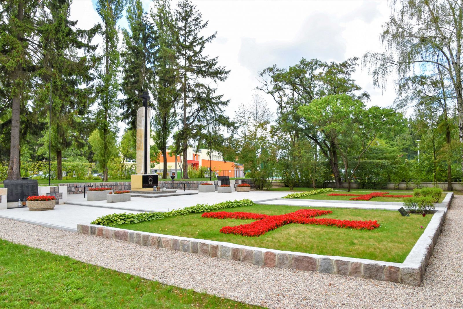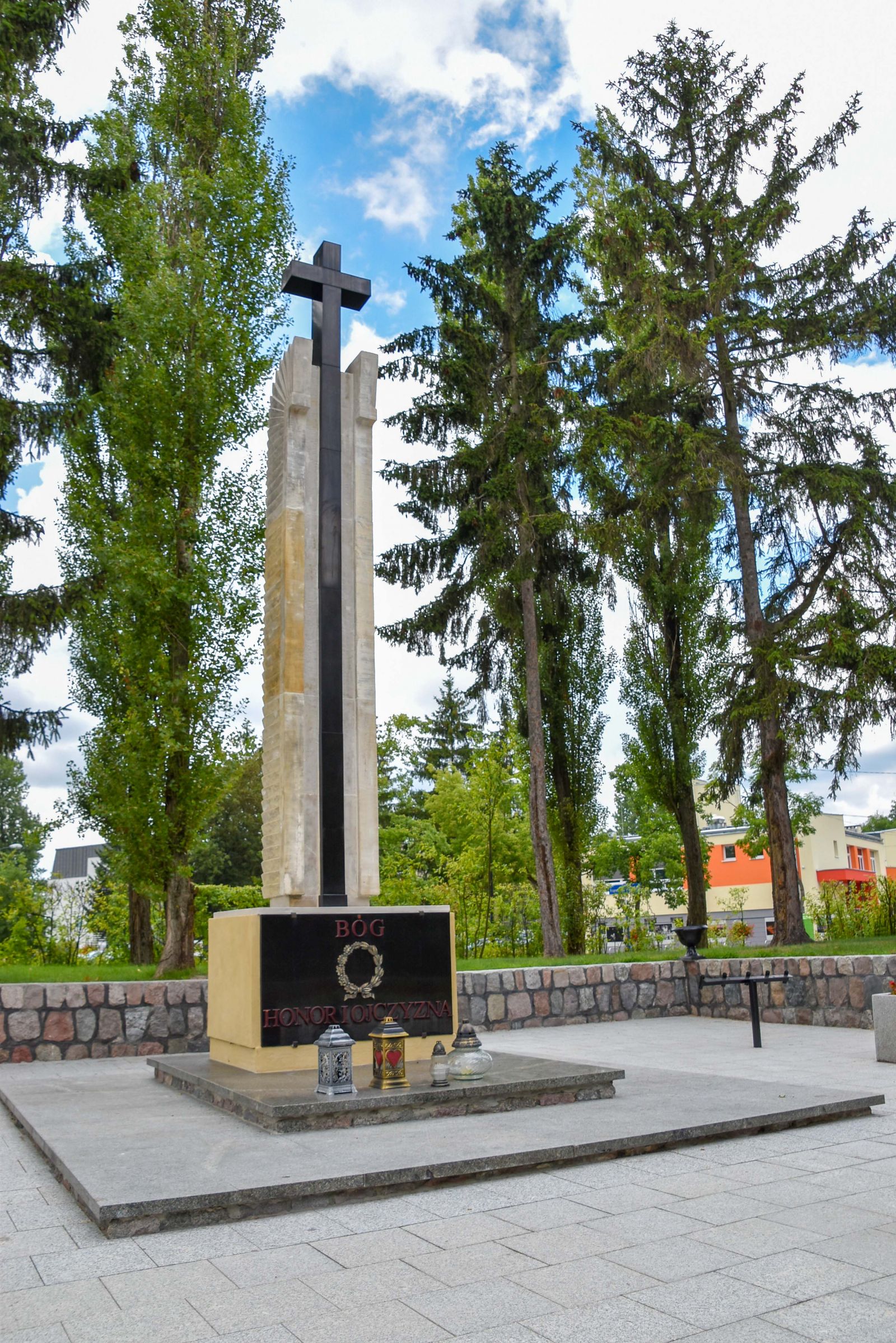 Prosty, z czarnego granitu Krzyż, białe zwycięskie skrzydła husarskie, u podstawy: Bóg – Honor – Ojczyzna – słowa, którym byli wierni do końca chłopcy i dziewczęta tamtych lat oraz dwie bratnie mogiły.