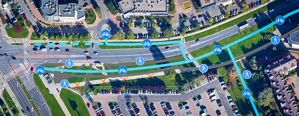 - Dążymy do tego, by obsłużyć wszystkie relacje, stąd ten łącznik dla osób jadących od strony Wańkowicza. Mamy też zachowaną rezerwę na połączenie tego fragmentu z drogą rowerową przy skrzyżowaniu z al. KEN - mówi Mikołaj Pieńkos.