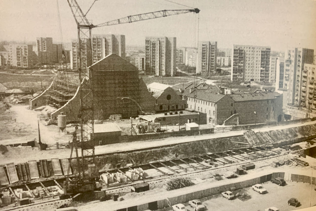 Trwało wykonanie projektu. Wiedzieliśmy już, na jakim terenie działki stanie kościół i jak te działki można zagospodarować jako zaplecze budowy. Czyli tu już ja wchodziłem z planem organizacyjnym placu budowy. Wspólnie z Markiem Budzyńskim, Andrzejem Krawczykiem, Jurkiem Rotowskim - projektantem instalacji stwierdziliśmy, że na górce na skarpie, w pobliżu, gdzie dzisiaj jest fontanna, postawiony zostanie budynek  gospodarczy. W nim miały się mieścić pakamery dla pracowników, biuro budowy, szatnie, umywalnie itd. Część obiektu przeznaczyliśmy na salki katechetyczne.